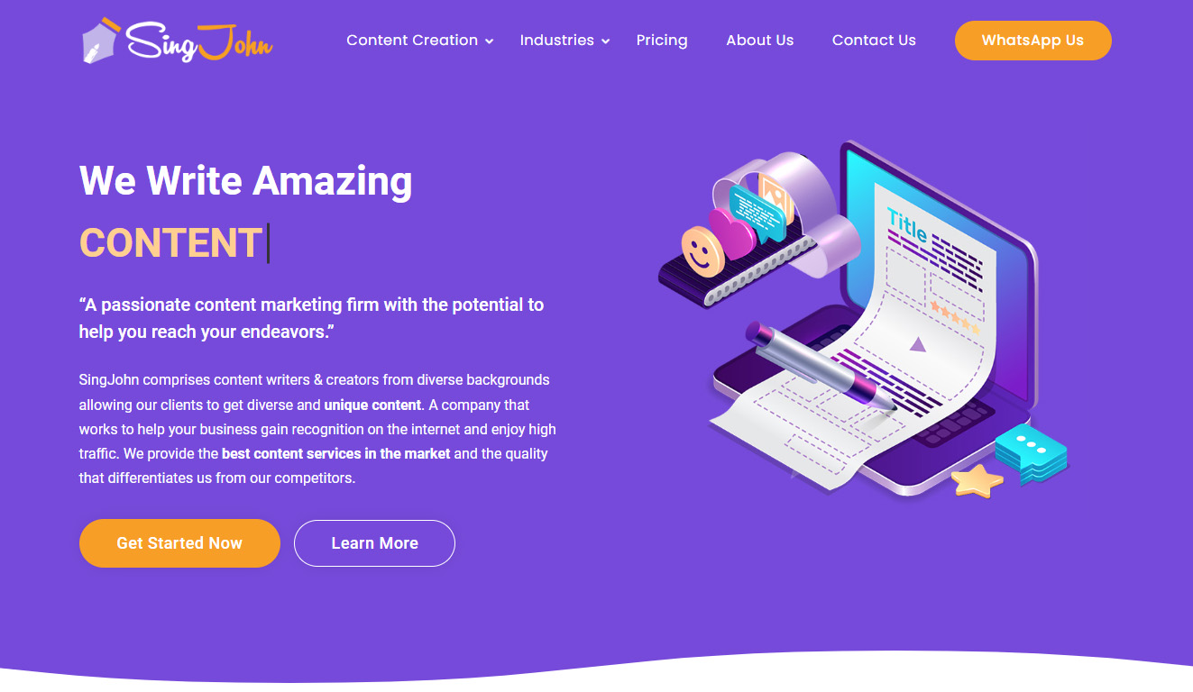 SingJohn comprises content writers & creators from diverse backgrounds allowing our clients to get diverse and unique content. A company that works to help your business gain recognition on the internet and enjoy high traffic. We provide the best content services in the market and the quality that differentiates us from our competitors.